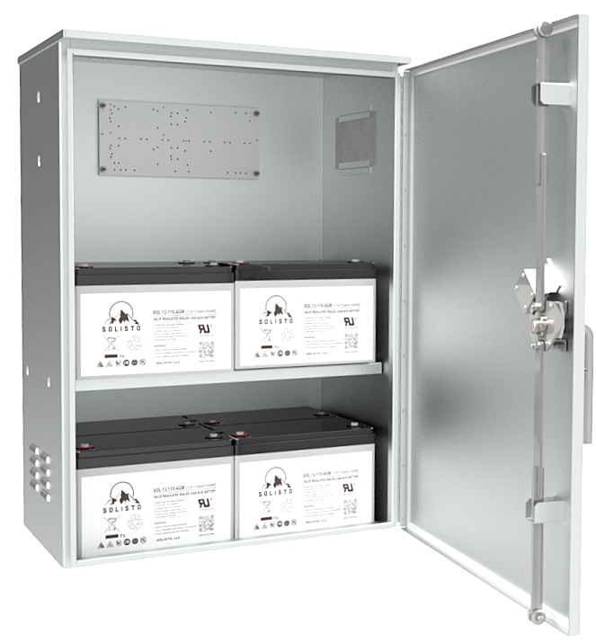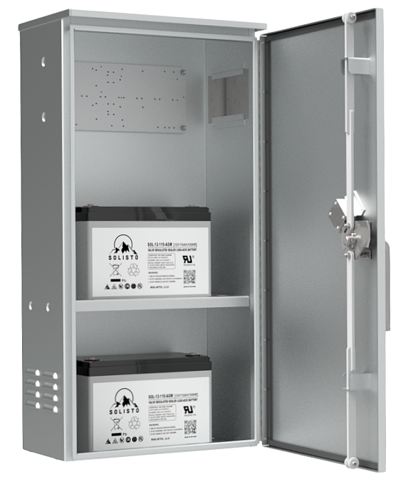 - Solar-Powered Traffic Systems — The enclosure works well with off-grid solar systems, supports multi-battery configurations, and protects charge controllers and power distribution hardware year-round.